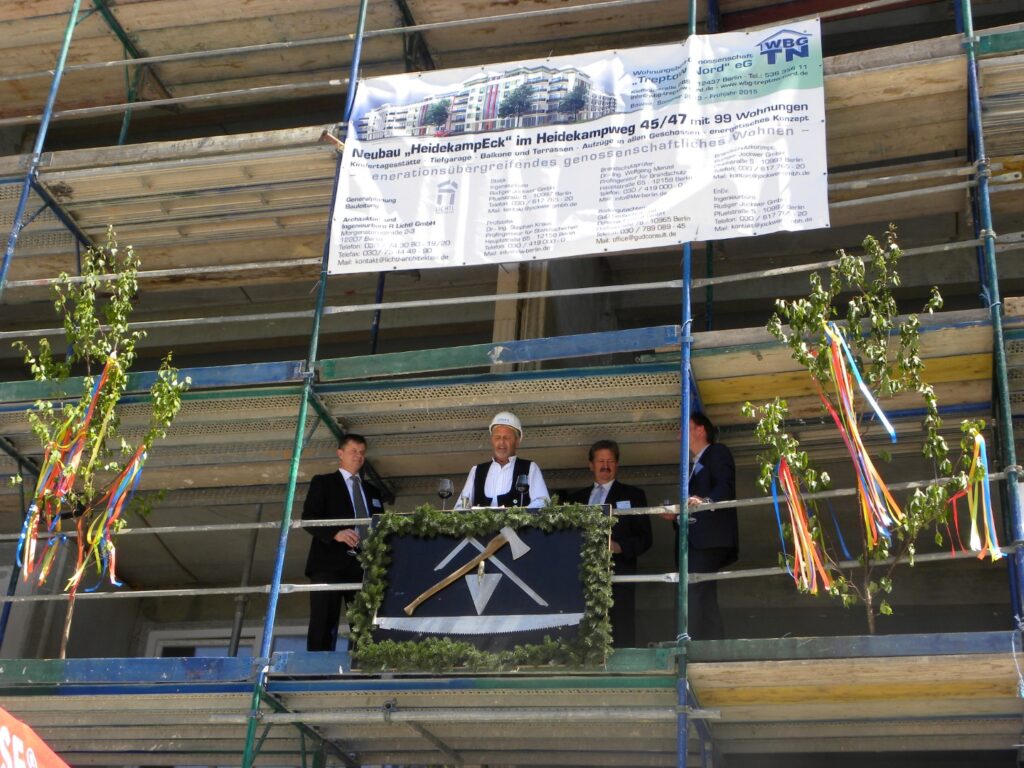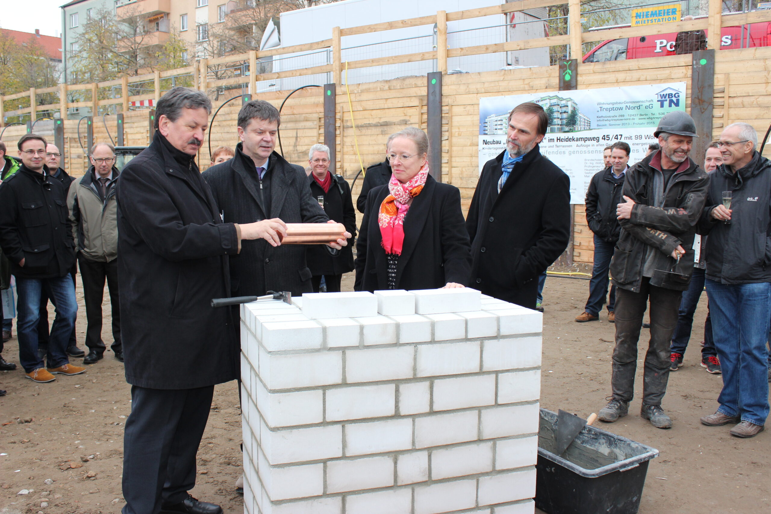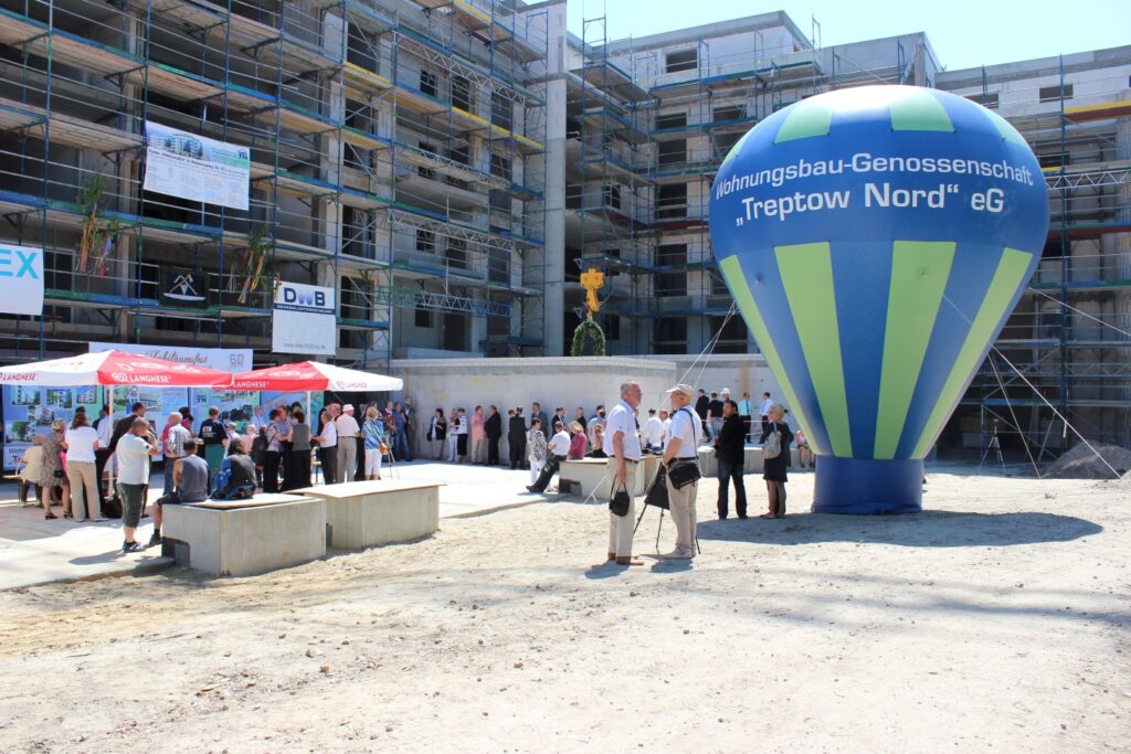 Für das Neubauprojekt im Heidekampweg 45/47 fand die Grundsteinlegung statt und somit auch der Startschuss für 108 neue und moderne Wohnungen. Außerdem waren der regierende Bürgermeister Klaus Wowereit und der Bezirksbürgermeister Oliver Igel im Mitgliedertreff zu Gast, um in einen persönlichen Austausch mit den Mitgliedern WBG „Treptow Nord“ eG zu kommen.