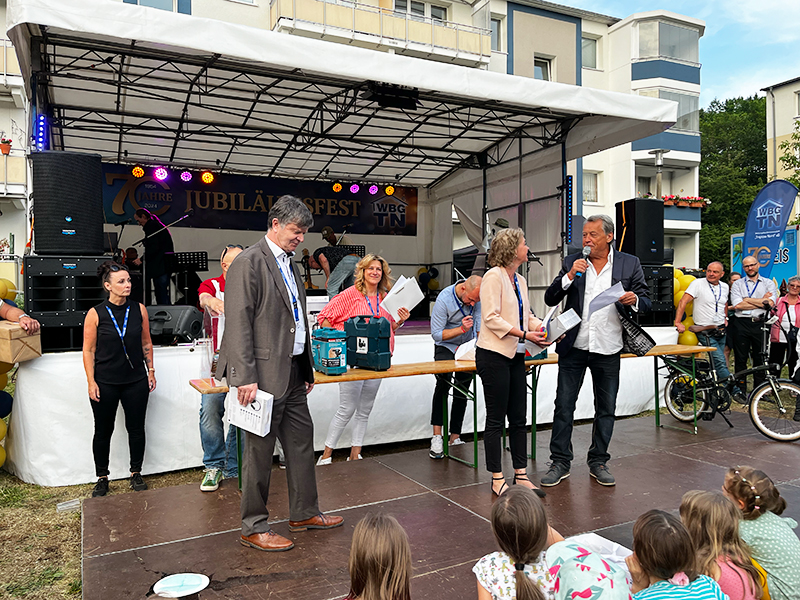 Die Wohnungsbau-Genossenschaft „Treptow Nord“ eG feierte am 17.05.2024 ihren 70. Geburtstag mit zahlreichen Mitgliedern, Geschäftspartnern aus Politik und Wirtschaft, anderen Wohnungsbaugenossenschaften, dem Verband Berlin-Brandenburgischer Wohnungsunternehmen e.V., dem Genossenschaftsforum e.V. und Gästen aus dem Wohngebiet auf der Festwiese in der Kiefholzstraße, unweit der Geschäftsstelle.