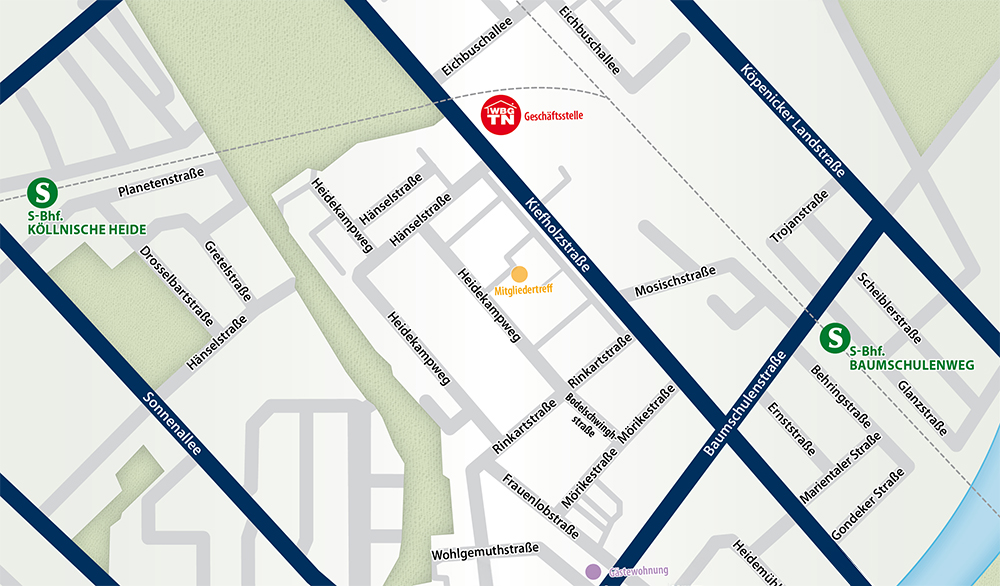 • mit der S-Bahn: Station Plänterwald, Baumschulenweg oder Köllnische Heide
