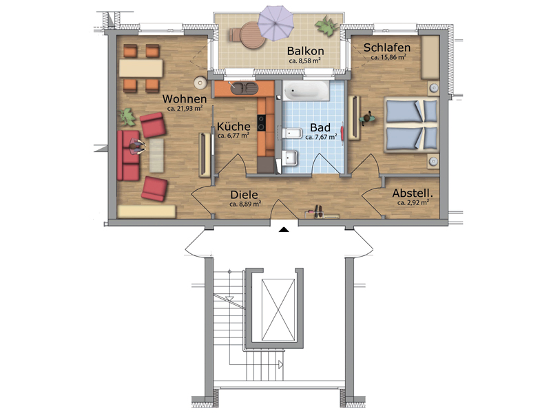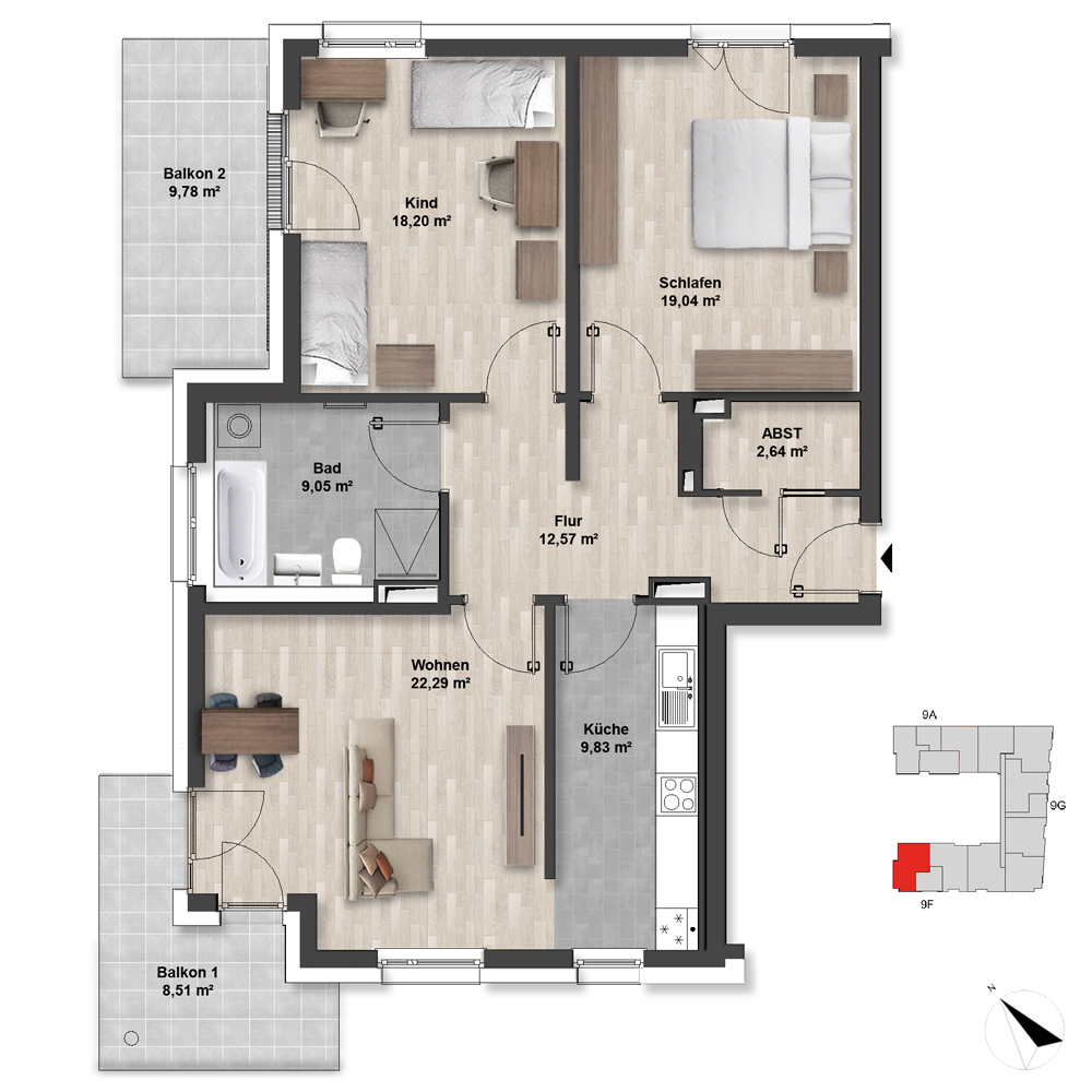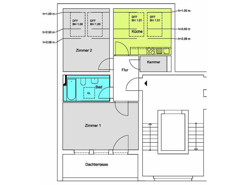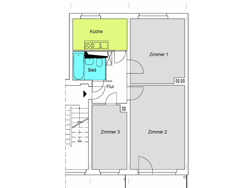 Rund zwei Drittel des Wohnungsbestandes unserer Genossenschaft wurde im Bautyp Q3A (Querwandtyp, Variante A) errichtet. Gebaut in den 1960er Jahren zeichnen sich diese Wohnungen durch optimal geschnittene Räume aus. In der Baureihe Q3A stehen unseren Mitgliedern 1- bis 4-Zimmer-Wohnungen mit einer Fläche von ca. 29 m² bis ca. 70 m² zur Verfügung.